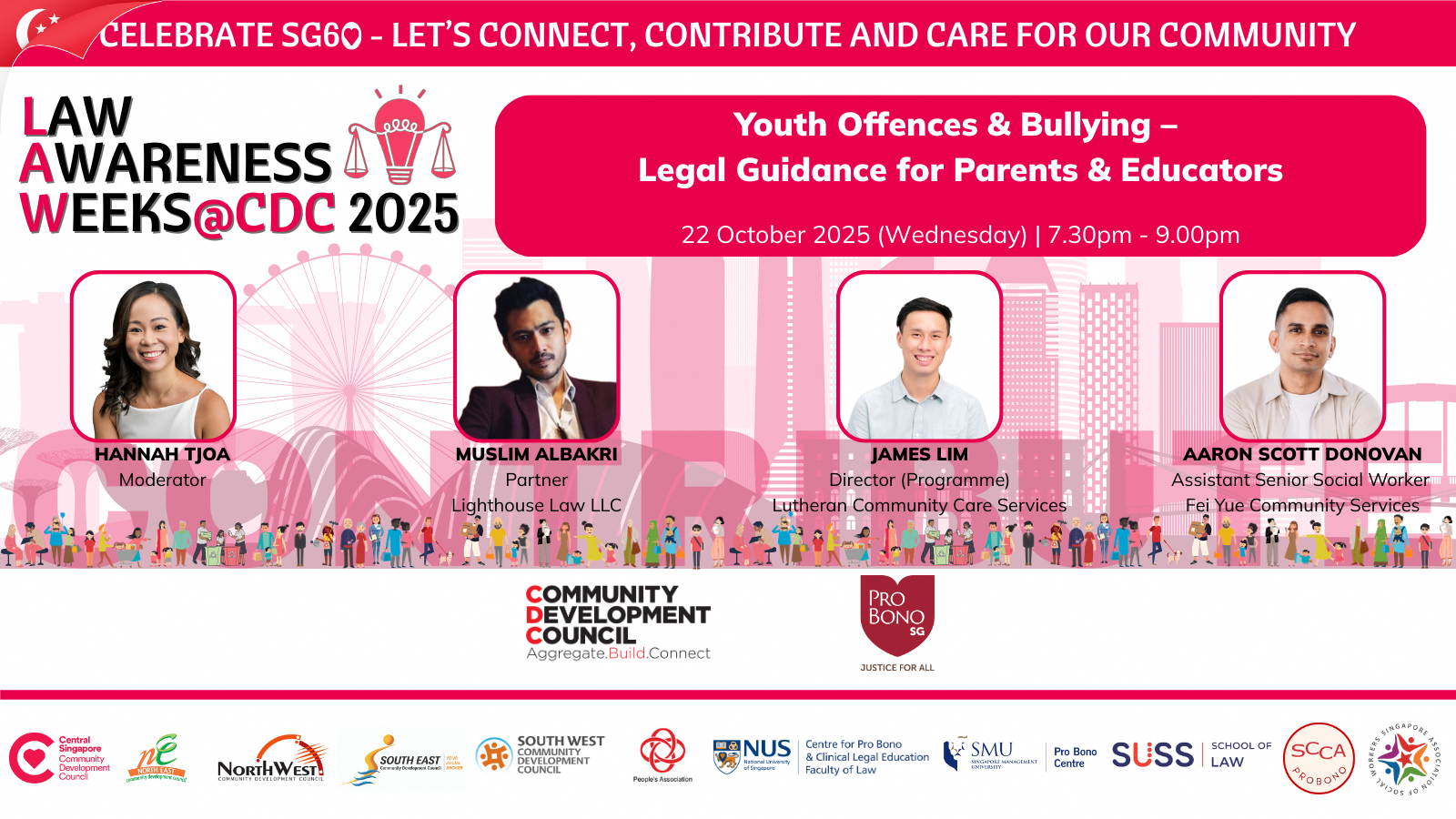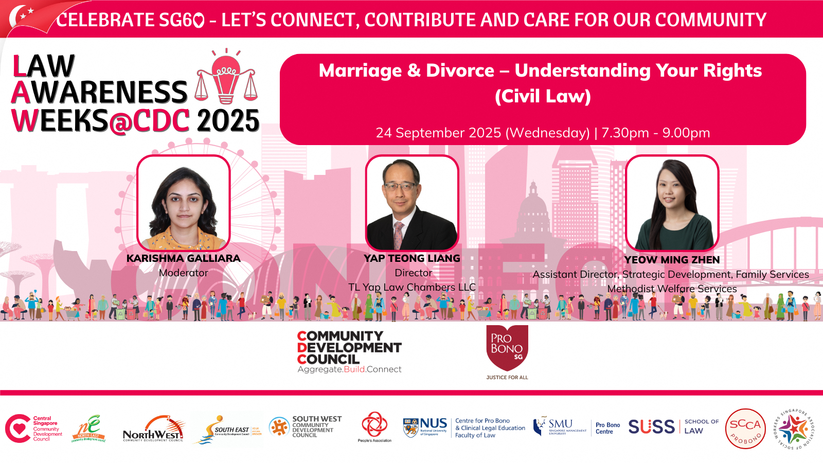 The session will cover marital rights and obligations, protection from family violence, legal grounds for divorce, and the therapeutic justice approach that focuses on de-escalating conflict and prioritising children’s welfare in divorce proceedings. Panellists will also address how ancillary matters such as asset division, child custody, care and control, and maintenance are resolved, along with where to seek legal and social support.