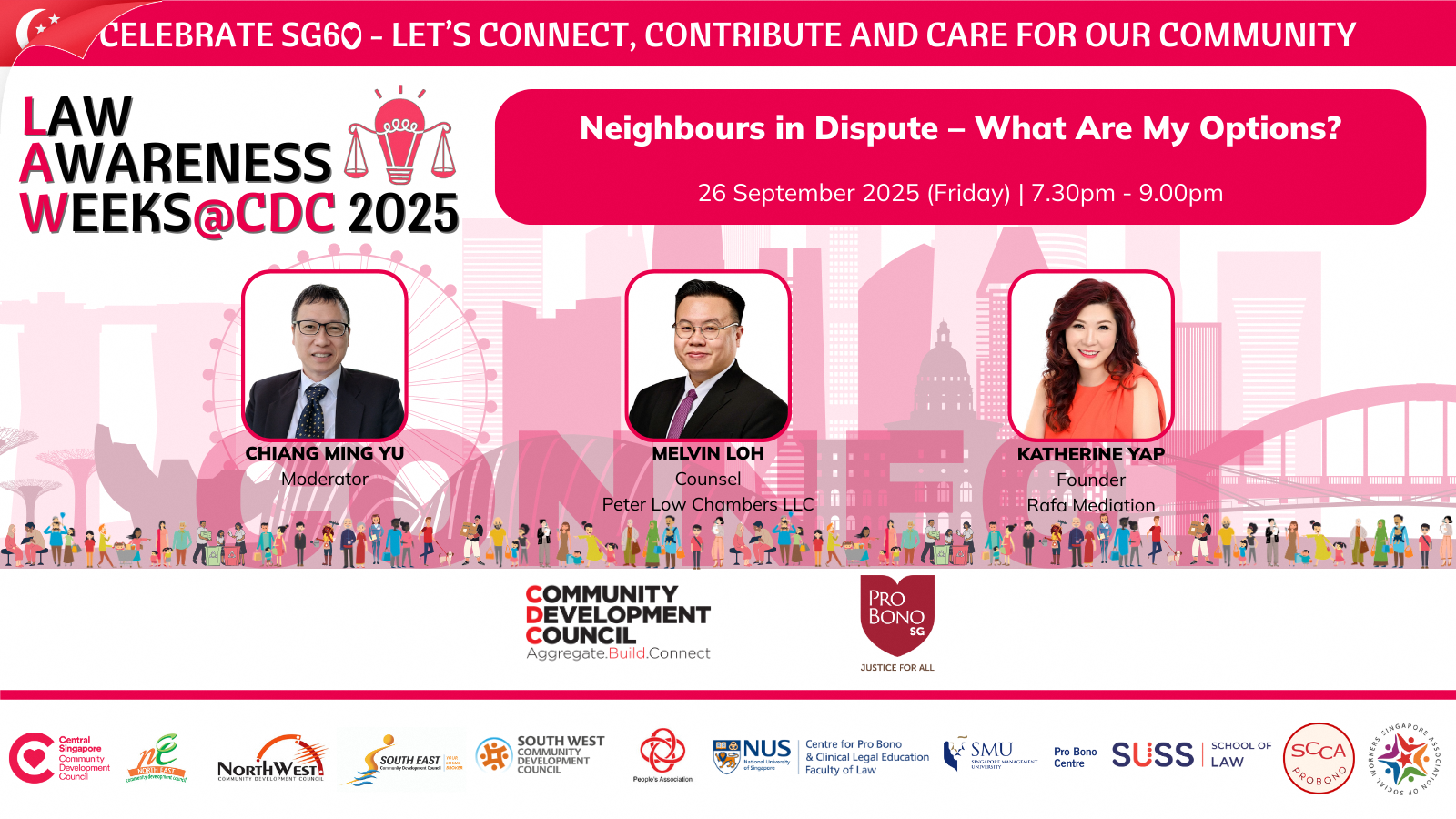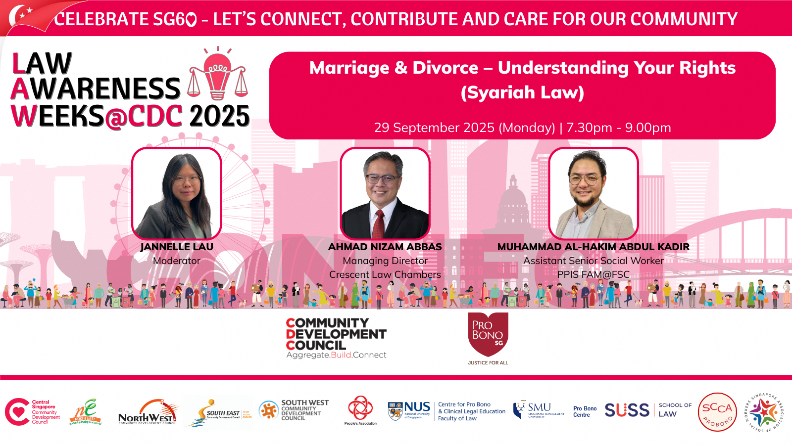 The session will cover the grounds of divorce, how divorce works under Syariah law in Singapore and important issues such as nafkah, custody, care and control of children and the division of matrimonial assets. Speakers will also share guidance on navigating the Syariah Court process, managing the emotional and family impact, and accessing legal aid, counselling, and community support.